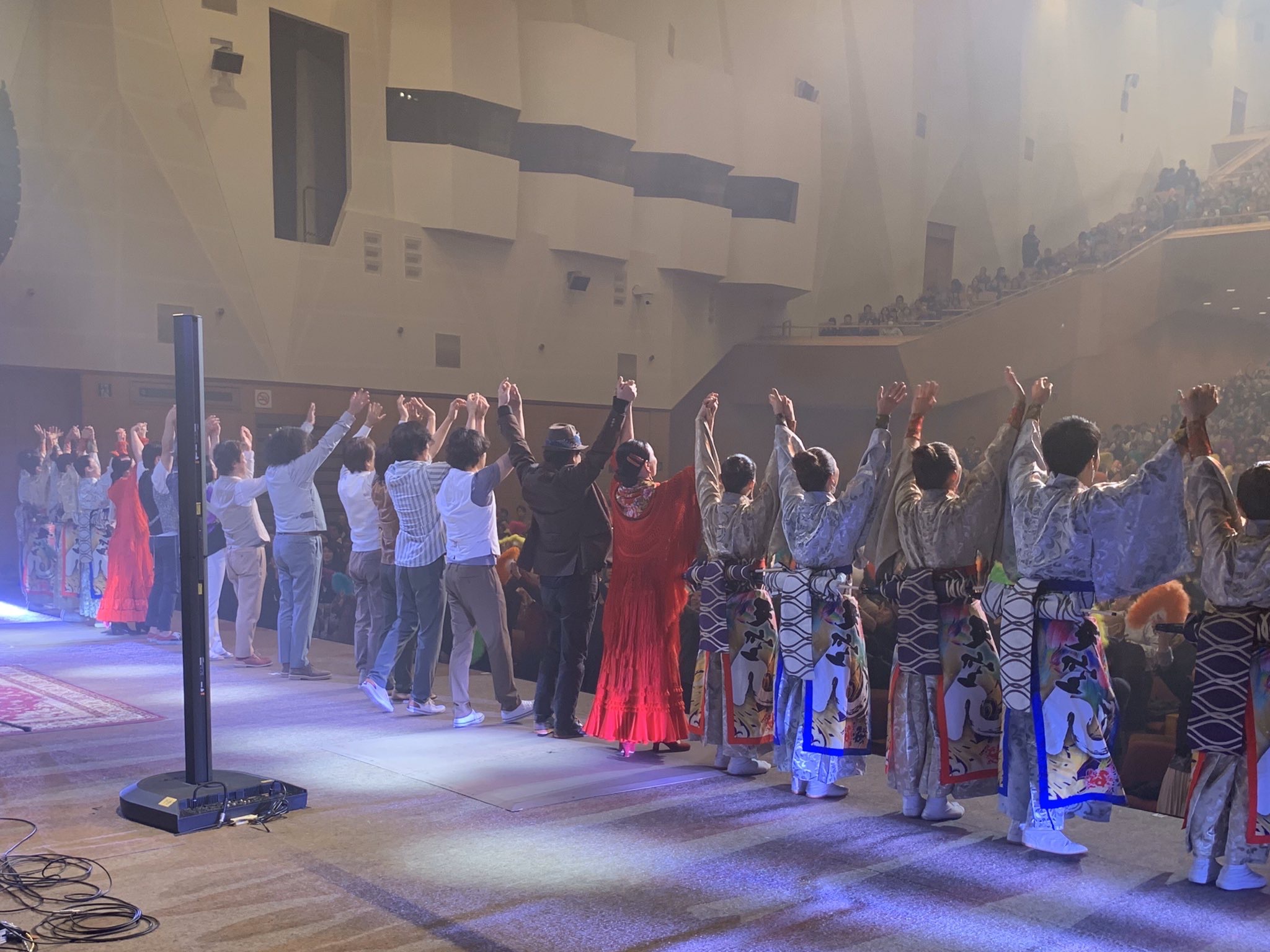 日本・中国・韓国の3カ国から毎年、各国の代表都市が選定されて行われる文化芸術交流。2019年は、日本から豊島区が選出されました。東京よさこいの殿堂入りチームとして派遣いただき、よさこいやオリジナルの和踊り・傘踊り、映像などを織り交ぜて20分のステージを行いました。出演者数:9名