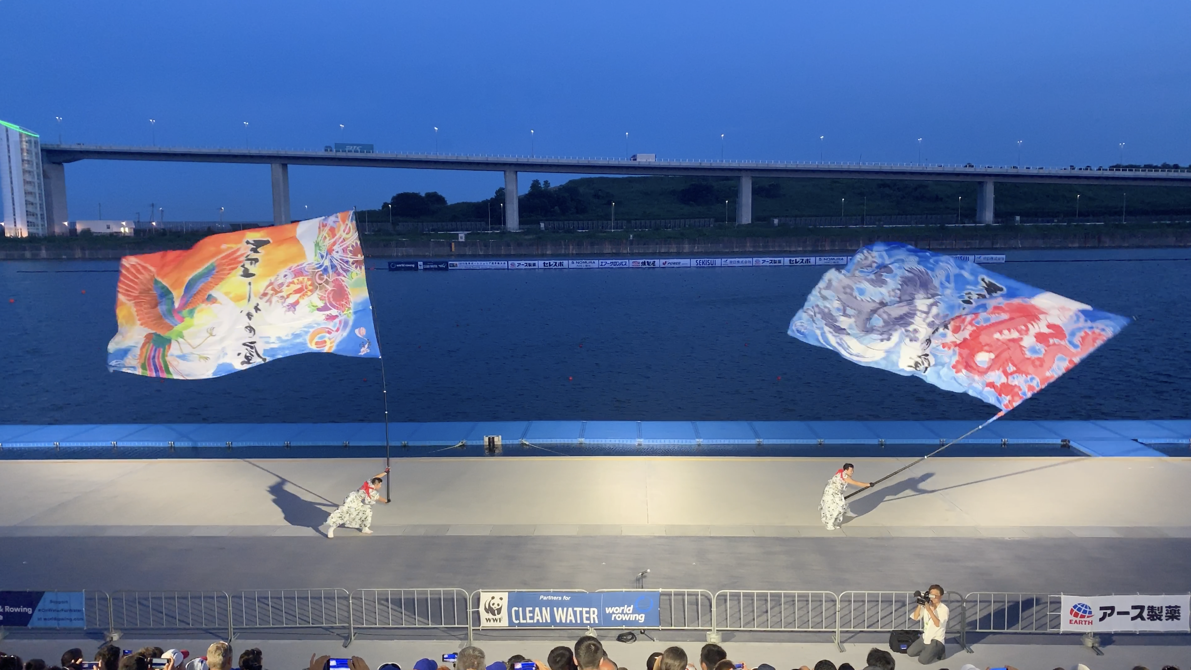 オリンピック会場となる水上競技場の完成後、初の国際大会。世界 50カ国からの選手団をお迎えする開会式に出演させていただきました。86名によるよさこい2曲の演舞に加え2本の大旗の競演で、外国人のお客様に非常に喜んでいただけました。動画をご覧くださいませ。出演者数:86名