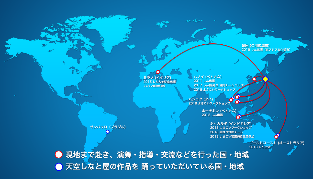 天空しなと屋は、海外でのよさこいの広がりを積極的に支援しています。